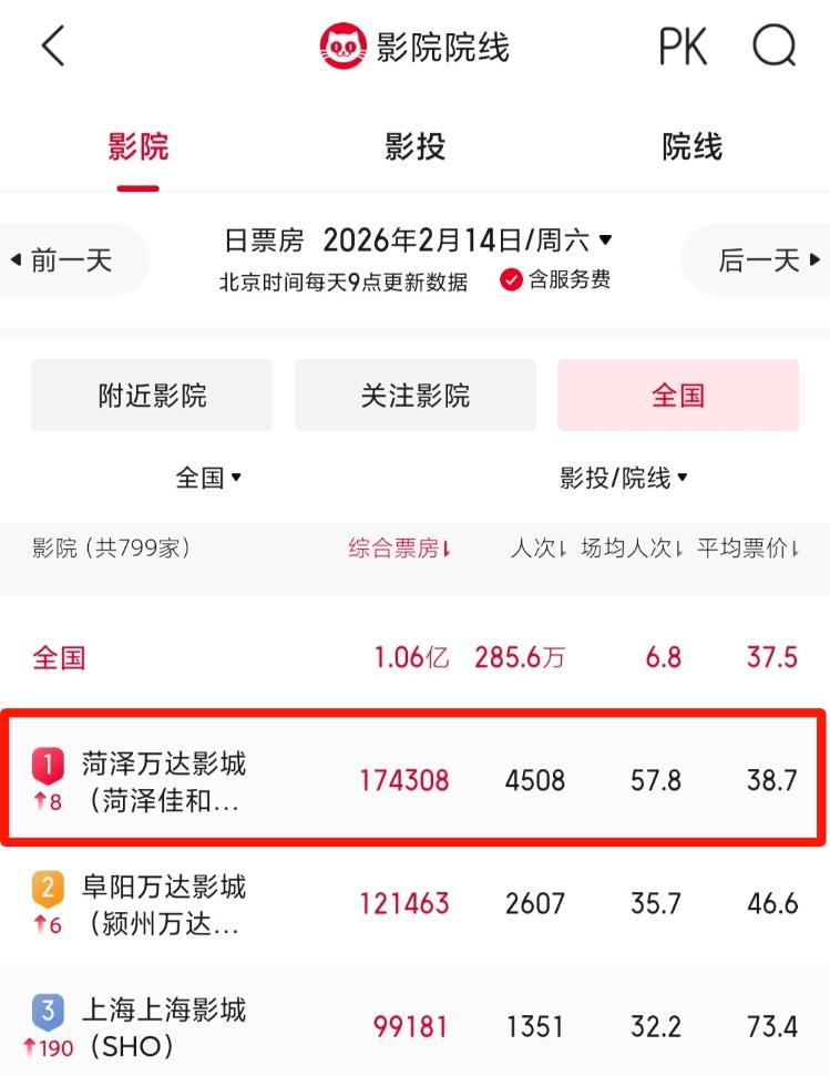 线上平台数据显示,2月14日,万达影院(菏泽嘉河市豪华店)取得17.43万元的惊人成绩,超越多家位于全国一线城市主要商圈的影院,登顶当日国内影院票房收入排行榜。鲁西南剧院如何在激烈的竞争中生存下来并迅速登上第一名? “说实话,我很有信心,但没想到我们会成为全国第一。”马云对记者说,语气中带着一丝惊讶。马导演回忆起那天的战斗,觉得电影档期是最重要的因素。当天首映的《我爱上你》准确抓住了情侣的“甜蜜点”,成为票房支柱。 “肯定有很多人看这部电影,”他说。 “电影节的情感需求”在他看来,观众留存不仅靠“好电影”,更重要的是还注重细致和个性化的服务。从门票销售到办理登机手续和电影服务,我们在各个方面都力求完美。此外,影院内还发布了限量套餐和纪念品,为观众营造了浓厚的节日氛围,进一步提升了观影体验。这种电影热潮并非凭空而来。马主任告诉记者,寒假以来,学生人数明显增加。年轻的阵容给了片场极大的信心和人气,引发集中爆发。截至目前,春节档已上映动画家庭片、紧张武侠片、原创惊悚片等7部不同类型的电影,预计票房已超过3.2亿元。马教练和他的团队已经准备好迎接下一个“大考验”。 “我们对我们的春节服务更有信心。如果我们选择合适的电影并提供服务好,观众自然就来了。”(齐鲁晚报齐鲁一点记者刘宗志)