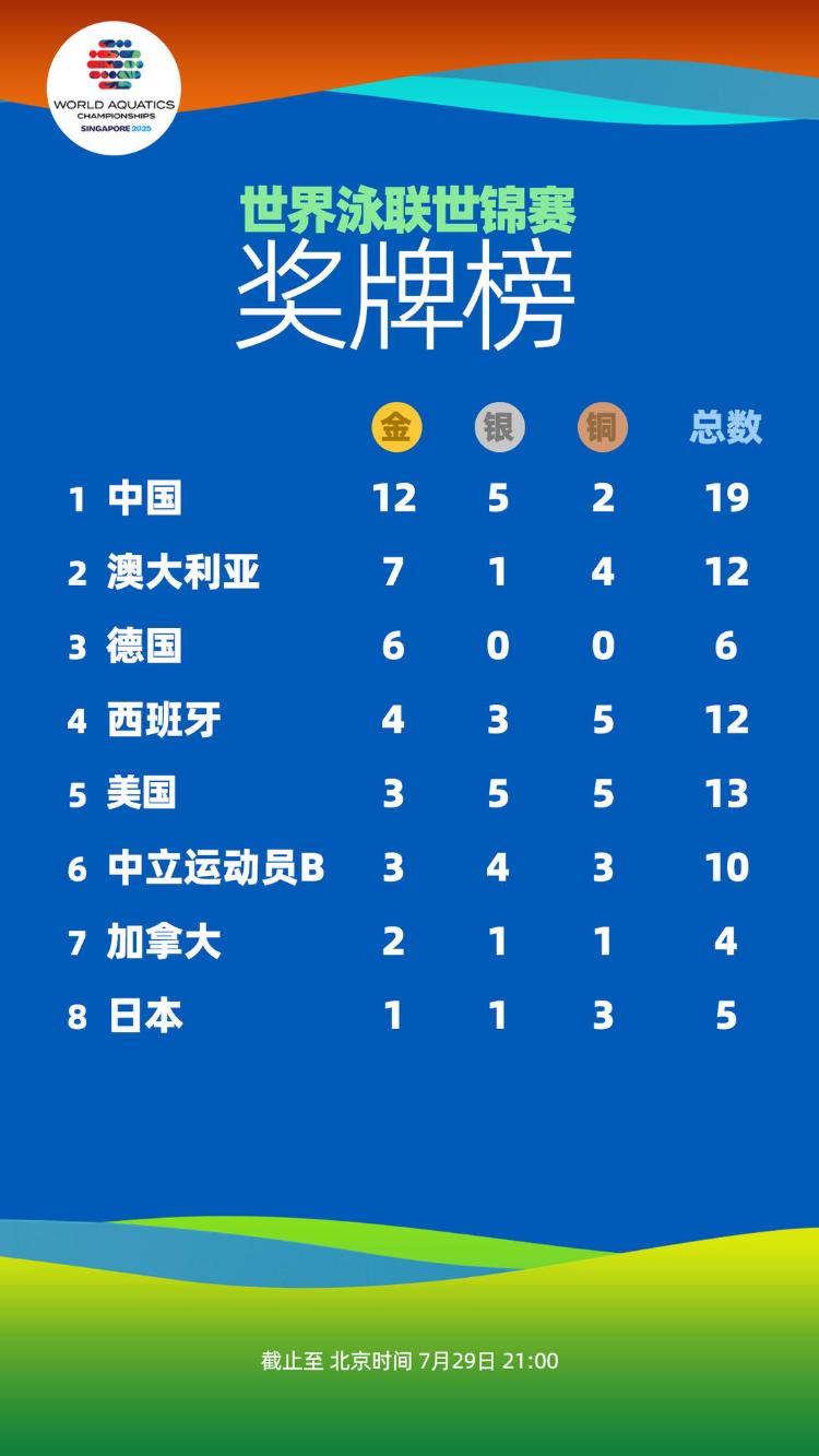 全球游泳联合会世界锦标赛2025年目前在新加坡目前在新加坡。从29分的晚上9:00开始,中国队被临时归类为12枚金牌,5枚银牌和两个青铜的奖牌清单。哪种金牌在今天的比赛中赢得了中国球队?明天比赛中最突出的方面是什么?让我们一起了解到,中国球队在女性双打中获得了3米蹦床,并连续14个世界冠军。在今天的比赛中,中国球队继续领导世界锦标赛中的奖牌名单,赢得了两枚黄金和铜牌。 Chen Yiwen的匹配/Chen Jia效果很好,并获得了金牌。 Cheng Zilong/Zhu Zifeng的匹配被投资以赢得冠军。双三米最后的蹦床决赛决赛Chen Yewen/Changjia在3米女的蹦床决赛中赢得了金牌。中国球队Chen Yiwen和Chenjia Se以325.20分的高分获得第一名时感到惊讶。最后的jumP确定世界! Cheng Zilong/Zhu Zifeng Double 10m平台投资并赢得了黄金。在双重10米平台的决赛中,中国的Chinogelong/Zhu Zifeng比赛在他的第四次跳跃中出错,在前五轮比赛后落后于13个主要积分,希望一旦冠军就很小。在最后的跳跃中,他们遭受了压力,几乎完美地获得了90.72分,最终以429.63分的得分获得0.8分,获得了令人震惊的回归并赢得了金牌。 Tang Qianting在100米女性的棕褐色中获得了铜牌。在女性100米的决赛中,中国球员唐·Qianting在第三条车道中以1分5.64秒的成绩游动,以赢得铜牌。第30次比赛的亮点:情绪不应消失。世界纪录的负责人兼帕利西奥米姆(Parisiolmimmm)的冠军潘恰纳尔(Panchanle)在免费的100米米型决赛中领导了比赛。 Rai Viepopovich de Bal Swam令人难以置信的46.71 SECONDS今年,他以46.40秒的成绩获得了历史上的第二名,在潘赞鲁(Pan Zanru)的世界纪录中排名第二。谁将在这场比赛中赢得冠军? △秦海阳在50 m的男性胸部半决赛中在50 m的男性胸部决赛中游泳26.52秒,该半决赛今天在世界水上运动联合会2025年的世界联合会举行,并在半决赛中排名第一。作为100米的世界胸冠军冠军,我们希望看看您是否可以继续表现出色。 △摄影比赛的先前信息将于明天播放。参加第八届世界锦标赛的王·肖(Wang Shun)将参加主要200米的Potpourri赛事。根据时间表,7月30日11:00在11:00喝了200米的Potpourri的资格回合,Wang Shun从第三条资格小组的第三车道分配。王·金(Wang King)在5月的全国冠军赛中赢得了两场战斗赛事的第一名,建立了新的400 – 波普里(Popurri)锦标赛的记录,赢得了冠军。国王将如何在这个世界锦标赛中工作?让我们拭目以待。跟随比赛并鼓励中国运动员! (CCTV新闻)