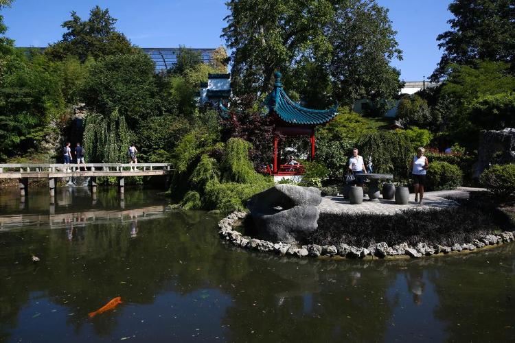 2019年8月24日,游客在比利时天堂动物园中国花园参观。供图:新华社记者郑焕松