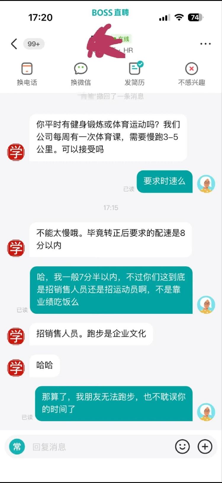 近日,长沙市一家教育培训机构因招聘实行“申请制”而引起广泛关注。该机构一位负责人接受潇湘晨报、晨报记者专访,详细解读了践行三年的“跑步文化”。 △网友在社交媒体平台曝光的截图。 3月6日,有网友反映,某教育培训机构招聘销售岗位时,人力资源部门建议员工每周参加一次“体育课”,定期慢跑3至5公里,配速不超过8分钟。该事件迅速引发热议,一些求职者怀疑自己是否在招聘销售人员或运动员,因而放弃了申请机会。 3月8日,潇湘晨报、晨报记者探访该机构办公室。现场工作人员f 证实跑步确实是公司文化的一部分。招聘信息上说我是销售职位,但每个人都在竞争。该负责人透露,招聘会并不是每天通过网络进行,而是每周一次,每次约一个小时,地点在一栋办公楼的底层。工作人员表示,8分钟或更短的配速要求属于日常跑步的正常水平,并强调该活动的重点是团队建设,无意为难员工。 △记者现场探访。当晚,记者专访了该教育培训机构负责人,详细了解了细则.adas以及该制度的初衷。据该负责人介绍,这种“跑步文化”已经存在了三年左右,虽然最初是现金奖励,但现在已经成为员工的一种习惯。负责人透露了具体的考核标准:“员工在试用期间只能跑步,且配速不超过10分钟。”没有严格的合规要求。成为全职员工的员工必须通过体育应用截图来记录他们的表现。女子必须在 24 分钟内跑完 3 公里,男子必须在 40 分钟内跑完 5 公里(即 8 分钟/公里配速)。补偿机制:对不达标的员工必须给予补偿。女孩可以跑4公里,男孩可以跑6公里。 △负责人Tiro limtweet的朋友和熟人的驾驶记录草图。该负责人强调:“他是作为董事主动参加的。”起初我跑3公里很难,但现在我可以轻松跑10公里。他坦言,引入这一制度的初衷是通过体育锻炼员工的自律性,要求管理层以身作则,强化自我约束。考察全队精神面貌和身体素质。 “我们在上班时间上班,给员工一定的现金补偿。实际上,时间和现金成本都很高。”该办公室一位代表告诉记者。 “最主要的原因是为了改善大家的身体状况。” (潇湘晨报)